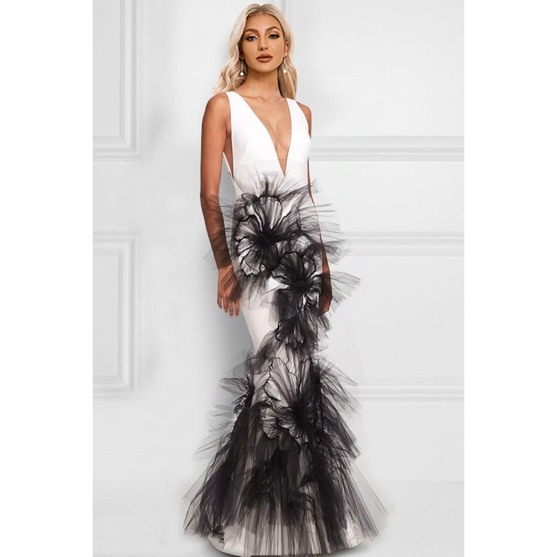Mermaid / Trumpet Evening Gown Color Block Dress Formal Floor Length Sleeveless V Neck Fabric with Appliques