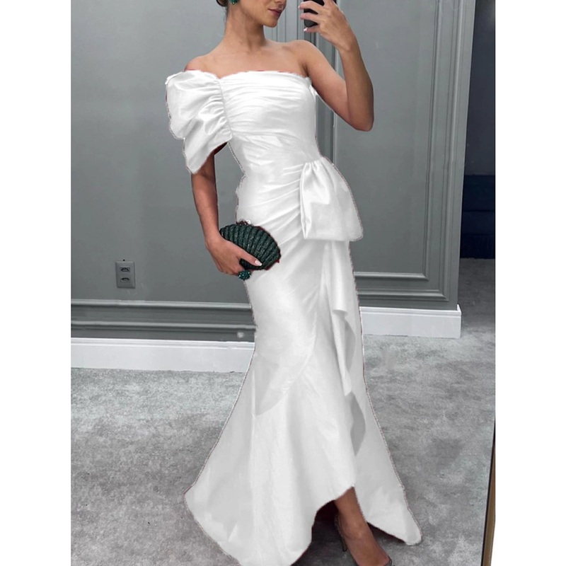 Mermaid / Trumpet Evening Gown Elegant Dress Formal Christmas Red Green Dress Sweep / Brush Train Short Sleeve One Shoulder Satin with Ruched Ruffles 2025