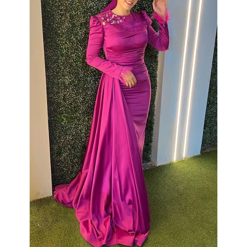 Be the first to review “Mermaid / Trumpet Evening Gown Elegant Dress Wedding Guest Fall Floor Length Long Sleeve Jewel Neck Satin with Rhinestone Ruched” Cancel reply