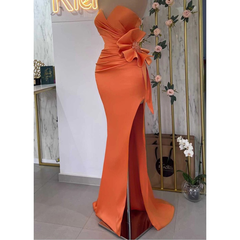 Be the first to review “Mermaid / Trumpet Evening Gown Floral Dress Masquerade Prom Sweep / Brush Train Sleeveless Strapless Satin with Slit”