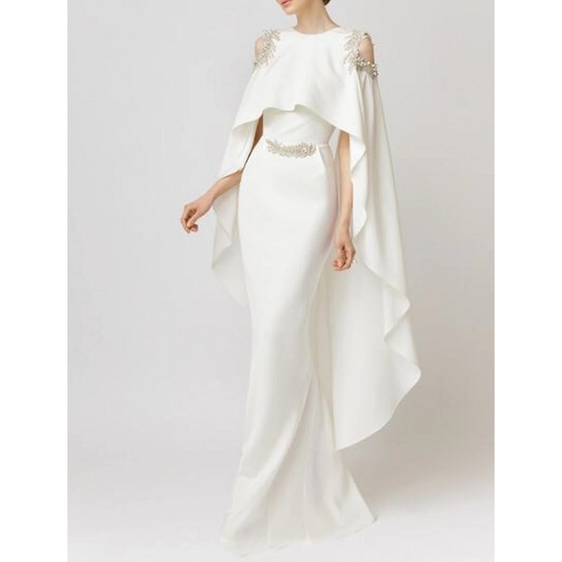 Mermaid / Trumpet Evening Gown Maxi Dress Formal Wedding Guest Floor Length Sleeveless Jewel Neck Capes Chiffon with Appliques