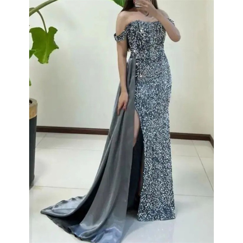 Be the first to review “Mermaid / Trumpet Evening Gown Sparkle & Shine Dress Christmas Court Train Sleeveless Off Shoulder Sequined with Sequin Slit” Cancel reply