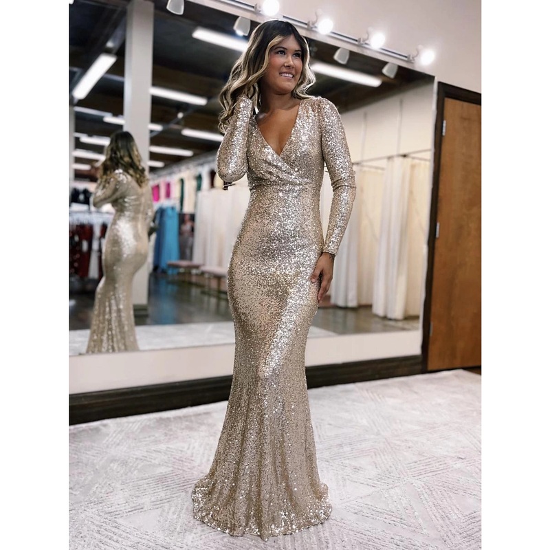 Mermaid / Trumpet Evening Gown Sparkle & Shine Dress Formal Prom Floor Length Long Sleeve V Neck Sequined with Sequin
