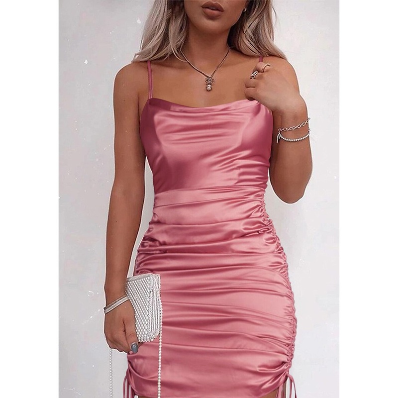 Mermaid / Trumpet Homecoming Dresses Backless Dress Cocktail Party Sweet 16 Short / Mini Sleeveless Spaghetti Strap Pink Dress Satin with Fringe Ruched Tassel