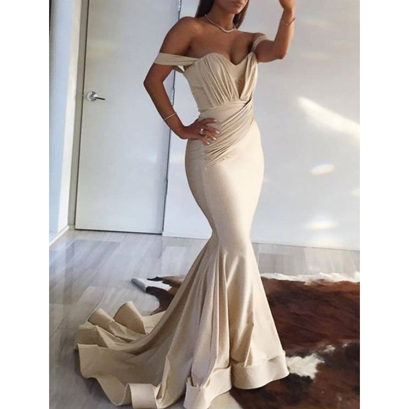Be the first to review “Mermaid / Trumpet Minimalist Sexy Wedding Guest Formal Evening Dress Off Shoulder Sleeveless Court Train Spandex with Pleats Ruched 2025”