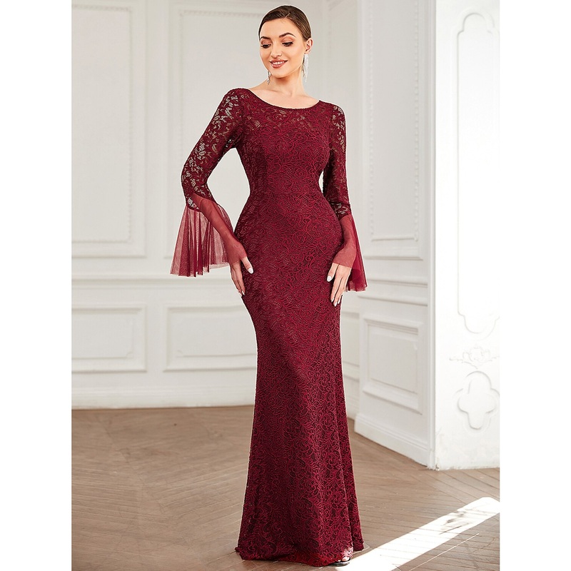 Be the first to review “Mermaid / Trumpet Mother of the Bride Dress Elegant Sexy Jewel Neck Floor Length Lace Long Sleeve with Solid Color” Cancel reply