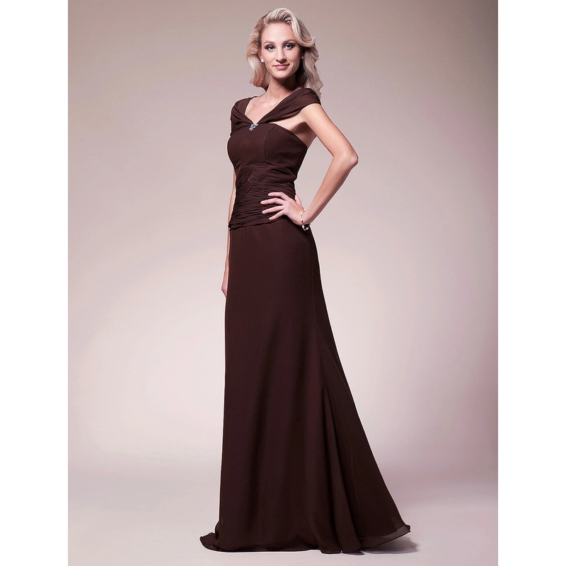 Mermaid / Trumpet Mother of the Bride Dress Vintage Inspired V Neck Floor Length Chiffon Short Sleeve No with Criss Cross Beading
