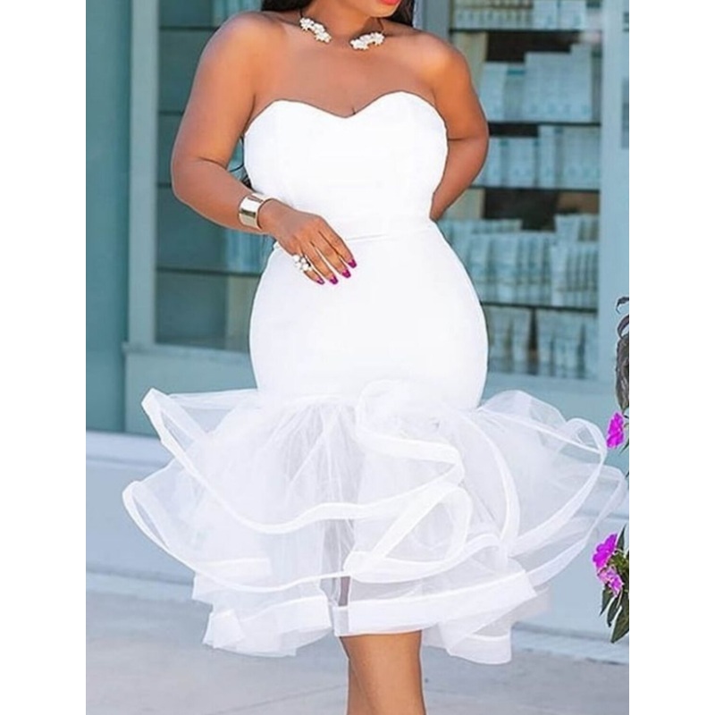 Be the first to review “Mermaid / Trumpet Plus Size Sexy Homecoming Prom Dress Sweetheart Neckline Sleeveless Tea Length Satin with Tier”
