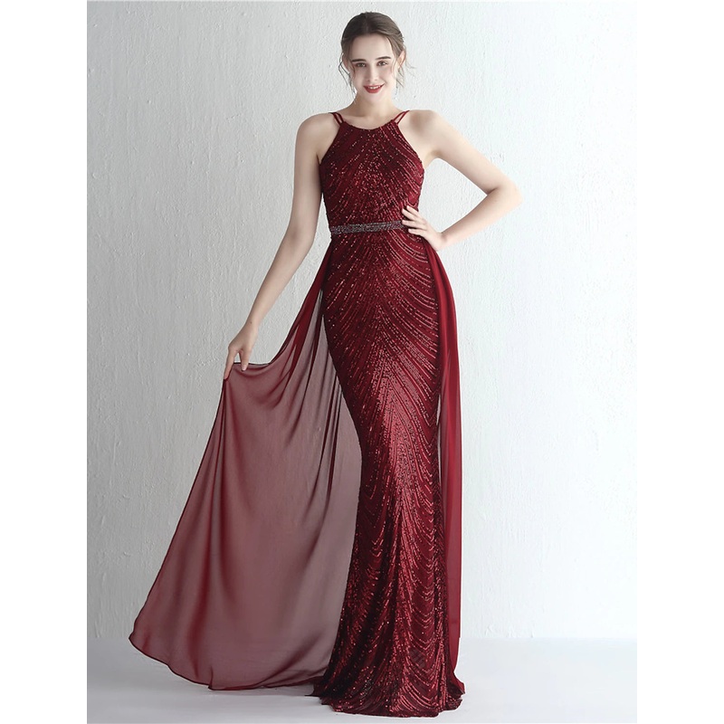 Mermaid / Trumpet Prom Dresses Sparkle & Shine Dress Formal Wedding Guest Floor Length Sleeveless Halter Neck Chiffon with Beading Sequin