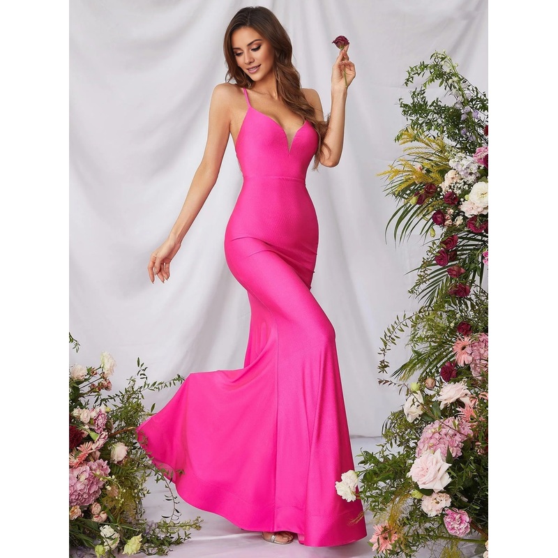 Mermaid V-neck slim shoulder strap backless and floor length formal dress