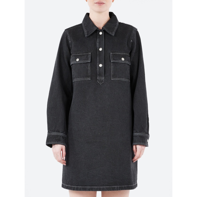 A.P.C. long-sleeved mini dress woven exclusively from cotton, it is cut to relaxed, A-line fit.Point collarThree button placketTwo chest pockets with buttoned flapsButtoned cuffsTone-on-tone topstitchingMid-thigh lengthMaterialsFabric Content: 100% cottonM
