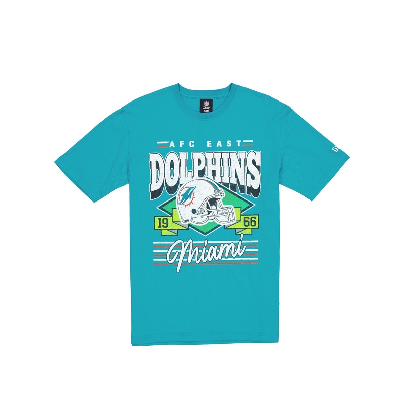 The Miami Dolphins Sport Classics Team T-Shirt features a screen-printed Dolphins wordmark and design at the front.
