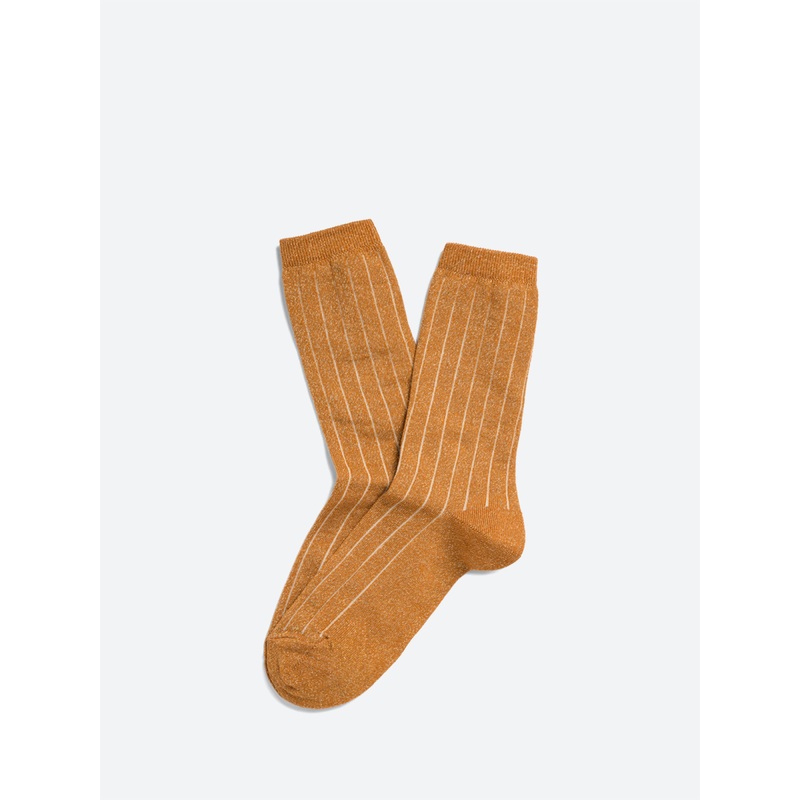 With their plain color and rib-knit, these shiny socks have a graphic aspect with contrasting vertical stripes.Calf-height socksRibbed cuffsSubtle sparkleHeight: 19 cmMaterialsFabric Content: 42% polyamide, 37% cotton, 18% metalized polyester, 3% elastaneM