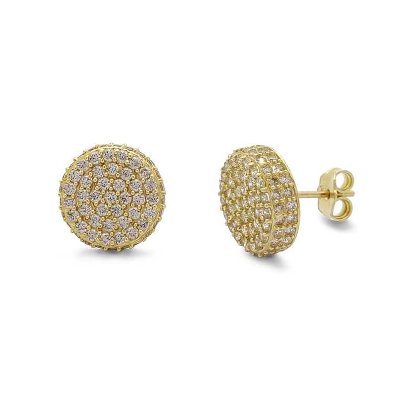 Precious Metal: 14 Karat Yellow GoldEarring Back Type: Push BackGemstone: Cubic ZirconiaDiameter:11.8 mm*Depth: 3.65 mm*Approx. Weight: ~3.6grams**All weights and measurements are approximate.Please contact us if you have further questions about alternate