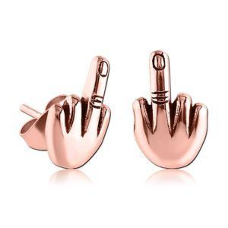 Middle Finger Rose Gold Stud Earrings 20 gauge Rose Gold Stainless Pair