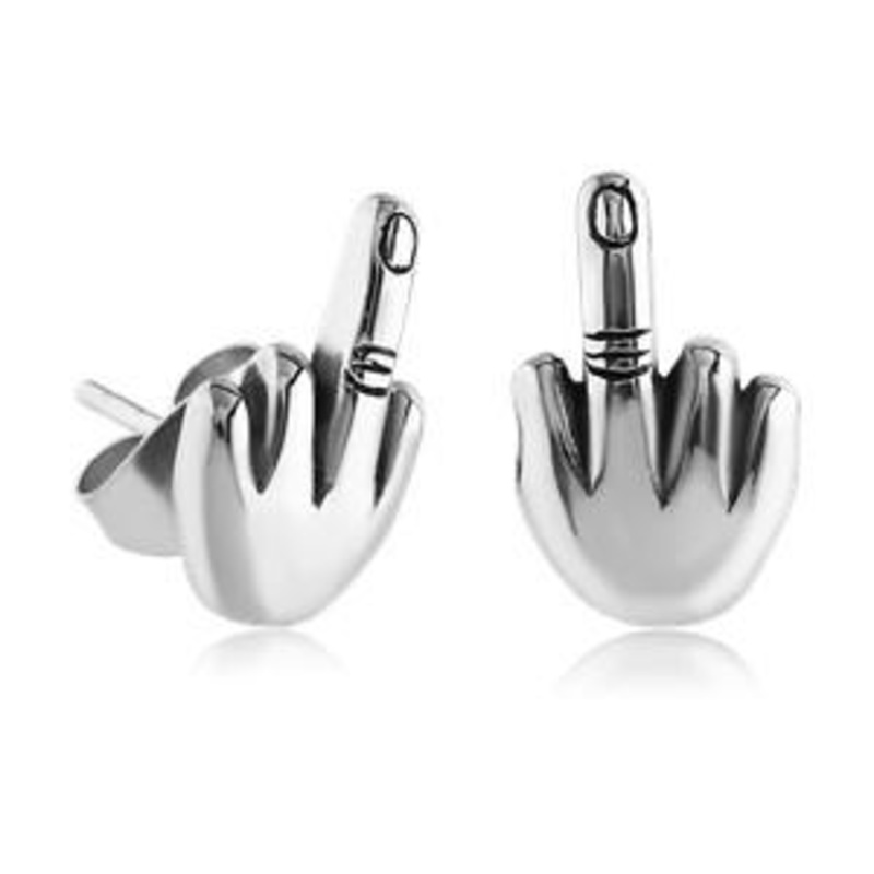 These 20 gauge middle finger stud earrings are made from cast 316L stainless steel.