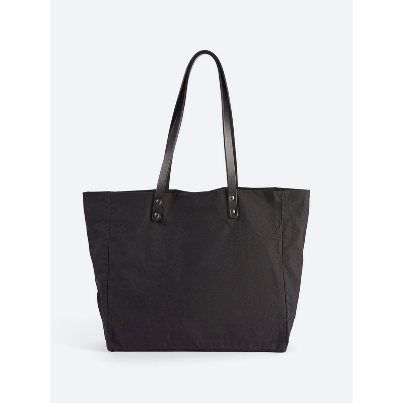 A lightweight but strong tote, featuring sturdy vegetable tanned bridle handle. The bag is cut out and stitched in Suffolk, and sent to the Kate Sheridan studio where they hand edge paint the straps and attach them.The bag can be folded in and clipped at the sides to make a smaller and more triangular shape, or used open for full effect. Made from water resistant British waxed cotton and finished with Italian brass hardware in a silver color.