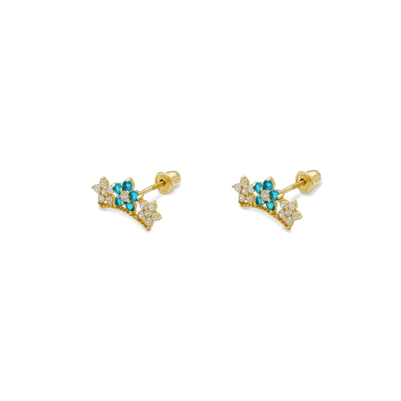 Milgrain Flowers CZ Stud Earrings (14K) Blue Cyan