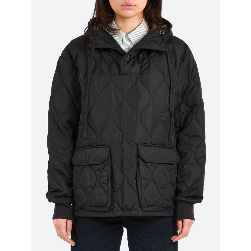TAION pullover military down hoodie offers a stylish and functional design with a hood, ribbed cuffs, and unique 2-way waist pockets, including fleece-lined hand warmer pockets. Its slit zippers enhance mobility, and the slightly oversized silhouette allow