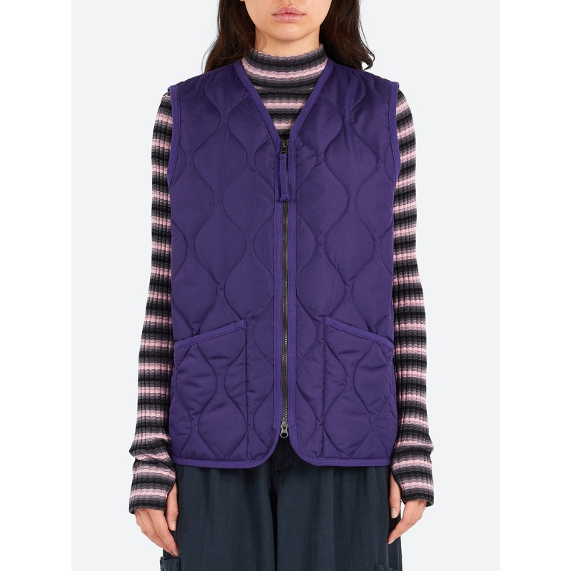 Military V-Neck Zip Down Vest D PURPLE S