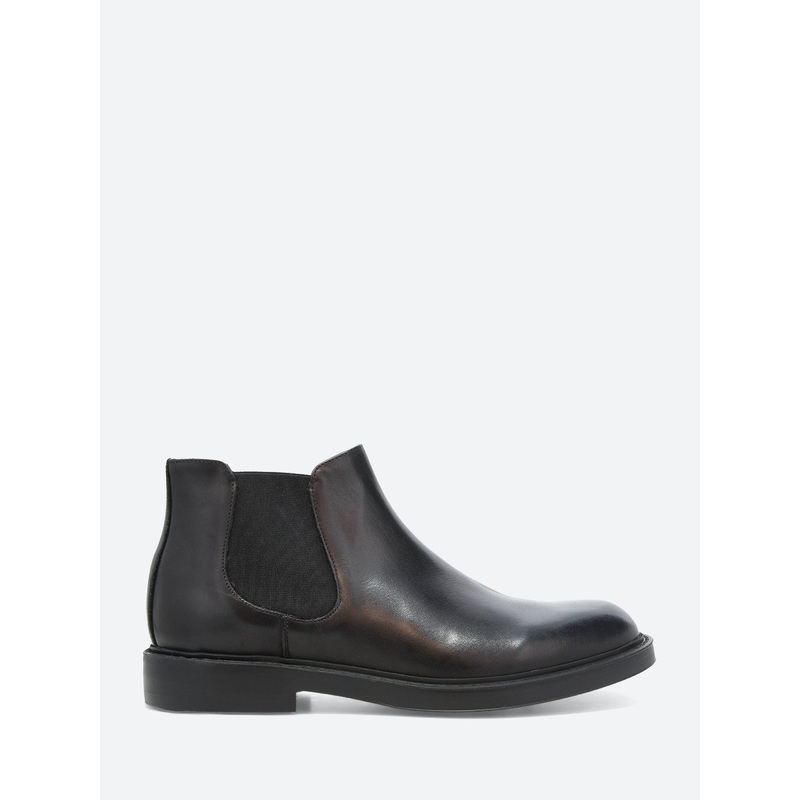 The gravitypope Mill Chelsea Boot in black leather features a sleek almond toe and a slender frame, striking a perfect balance between modern and classic styles. With its ankle-height design, elastic gussets on the sides for easy slip-on wear, and tonal st