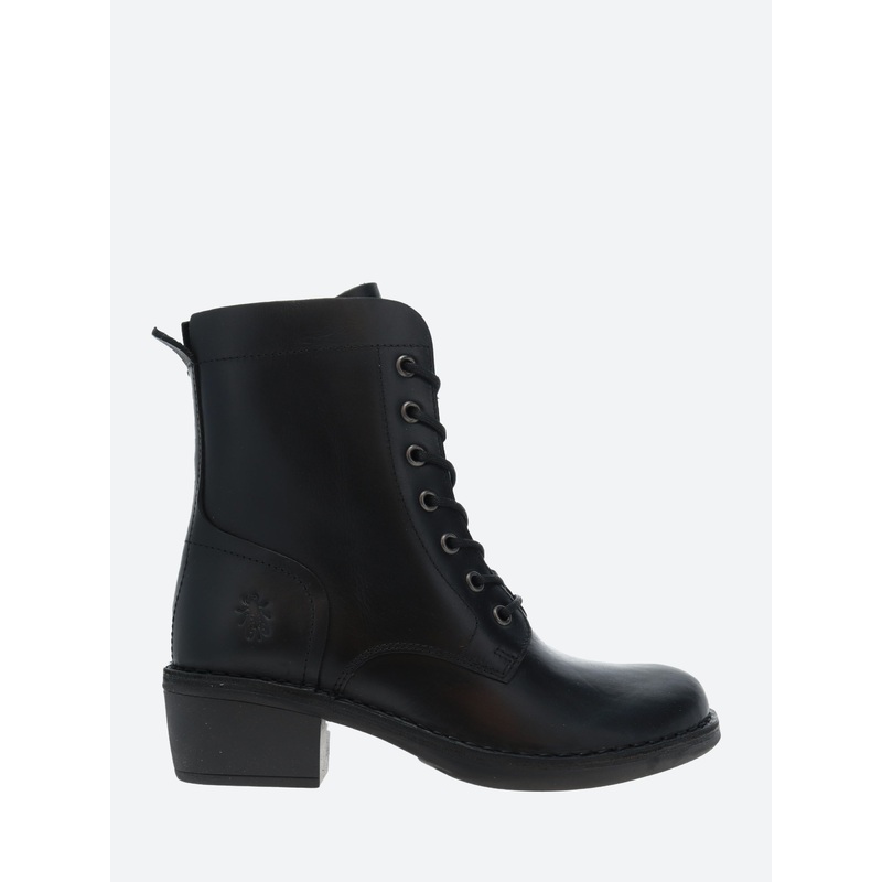 A simple combat boot from Fly London with a cushioned footbed that brings all-day comfort. Sits on a modest block heel.Ankle heightLace-up closureRemovable cushioned insolePull loop at the heelRound toeMeasurements:50 mm heelMaterialsUpper leatherLining: t