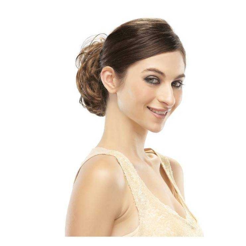 Mimic is a slightly curly to wavy synthetic hair wrap on an elastic band.