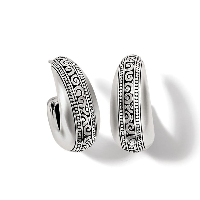 Bold yet graceful earrings feature soft sculptural curves and the definitive decorative scrolls and discs that match the Mingle Collection.