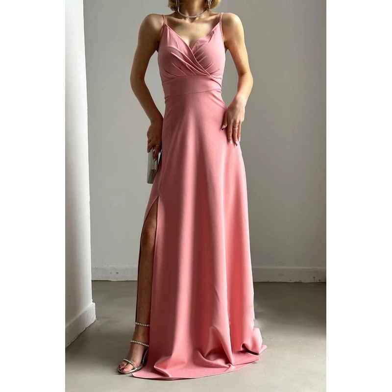 Minimalist A-line sexy V-neck shoulder strap long slit ball evening dress