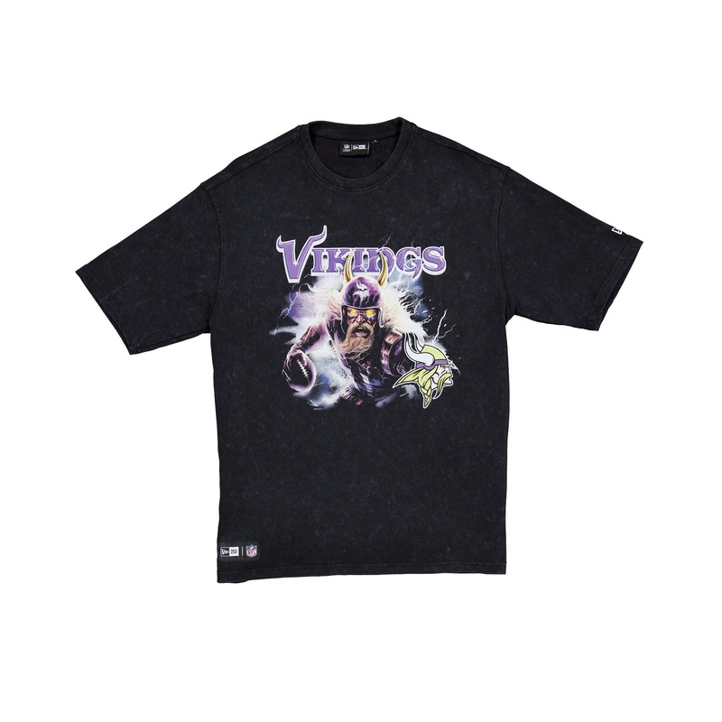 The Minnesota Vikings Premium Black T-Shirt features a screen printed Vikings graphic and logo at the front with a washed fabrication.