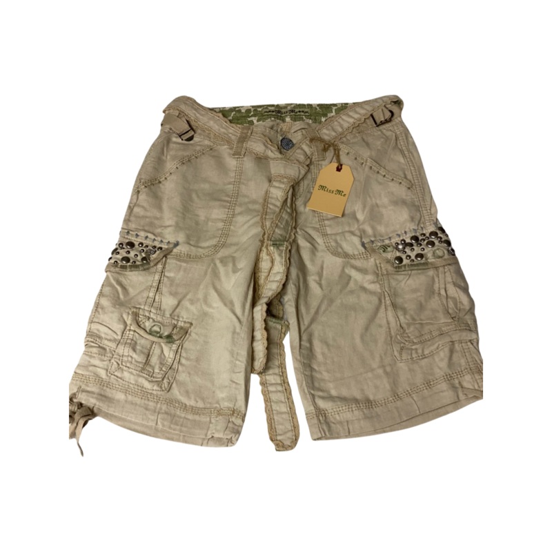 Details: Tan/floral print lace belt andbeaded pockets, with metal stud work