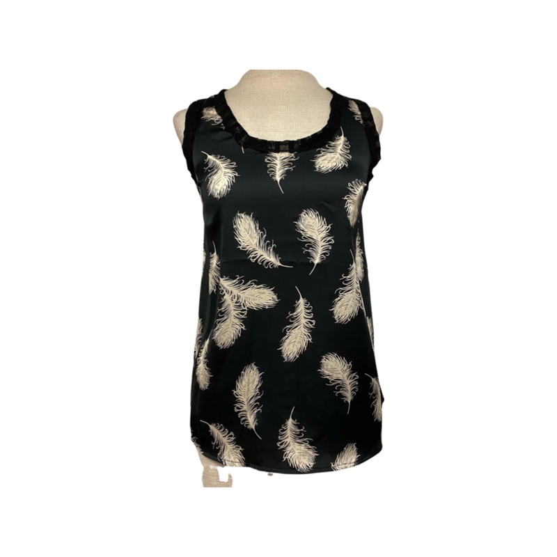 NewWomen's polyester razor back tankcolor: black with feather print size: (x-sm) 1