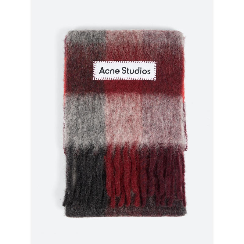 Acne Studios Vally checked scarf is made of a soft mohair blend, finished with fringed ends and an oversized logo patch.