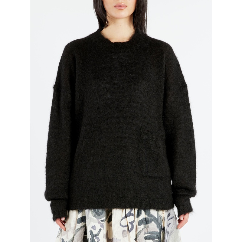 Casey Casey sweater in a mohair and silk fabric. Machine knitted in gauge 5.CrewneckDropped shouldersPatch pocket at the frontRibbed neck, cuffs and hemMaterialsFabric Content: 80% mohair, 20% silkSize GuideLinda wears size S. She is 5'9"; bust 32"; waist