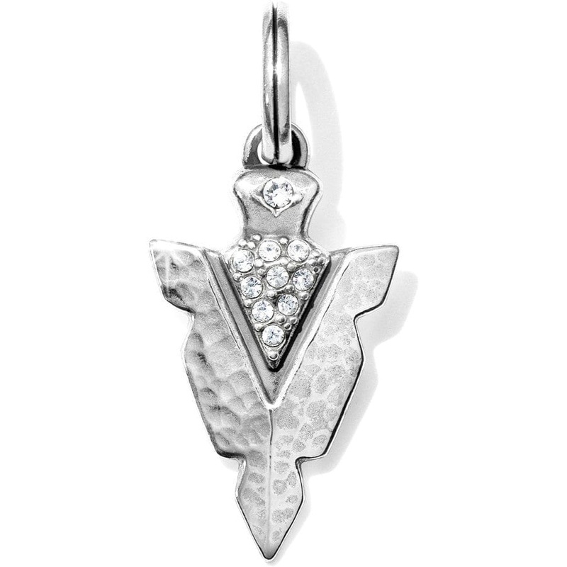 Gain momentum, courage, strength and good fortune with this hammered arrow amulet that sparkles with fine quality crystal at the base.