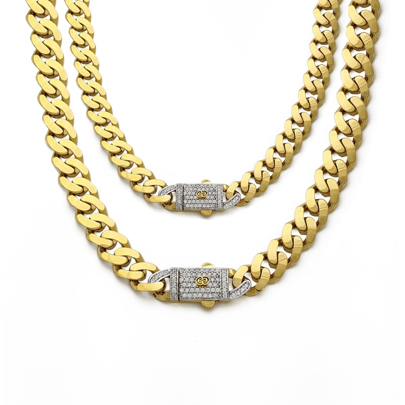 Precious Metal: 14 Karat Yellow GoldLock/Clasp Type: Iced-Out Box LockAvailable Sizes:Thickness:7 mm9.25 mmLength:20 inch22 inch24 inch*All weights and measurements are approximate.**Pendant sold separately.Please contact us if you have further questions a