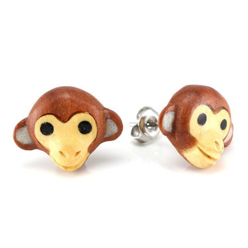 Monkey Moji Stud Earrings by Urban Star Organics 20 gauge Sabo Wood Pair