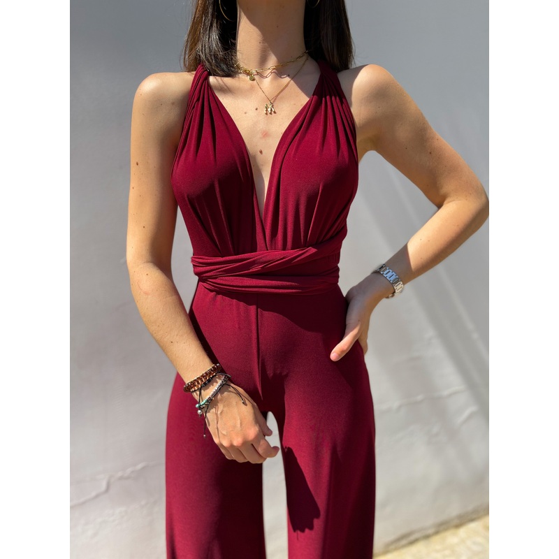 Mono largo multiposicion . Pantalon ancho fluido, los tirantes se ajustan alrededor del contorno del cuerpo con la posibilidad de ponerlo en varias posiciones. Cintura elstica