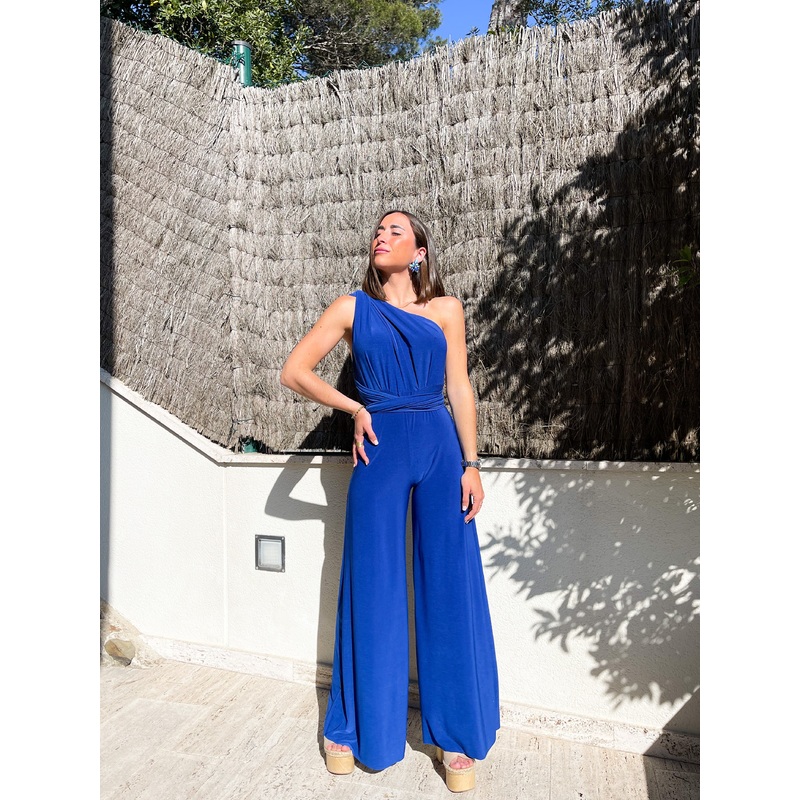 Mono largo multiposicion . Pantalon ancho fluido, los tirantes se ajustan alrededor del contorno del cuerpo con la posibilidad de ponerlo en varias posiciones. Cintura elstica