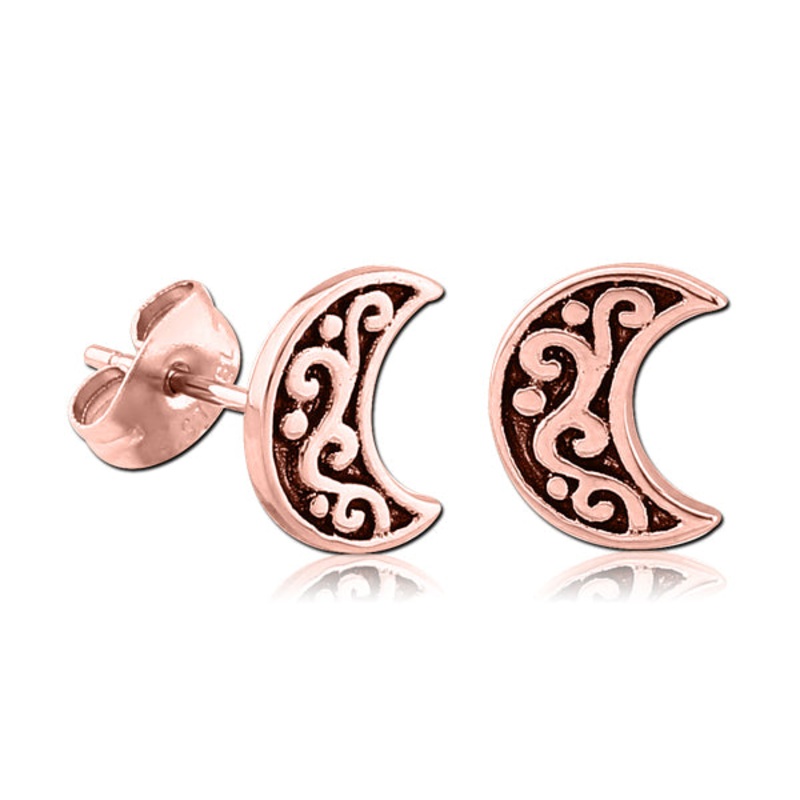 These 20 gauge moon stud earrings are made from rose gold plated cast 316L stainless steel.
