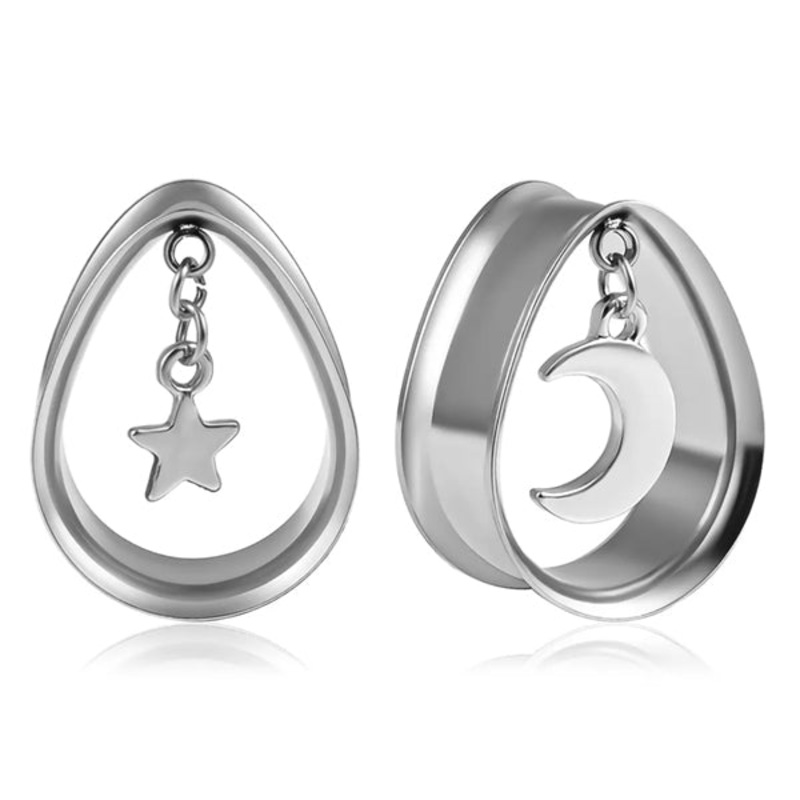 Moon & Star Stainless Teardrop Tunnels 1/2 inch (12mm) stainless steel