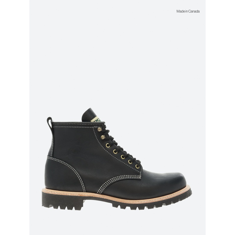 Canada West W.M. Moorby 2814 boot is handcrafted to exacting standards in Winnipeg from premium grade leather.Ankle heightEyelets and hooksLace-up fasteningLeather cushion insolesRound toeGoodyear weltedVibram outsolesMaterialsUpper: leatherLining: leather