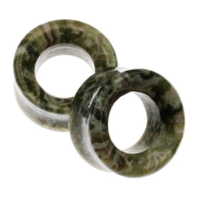 These moss agate eyelets are made by Oracle Body Jewelry. They have a wearable area of 7/16" between flares. Choose your size below.