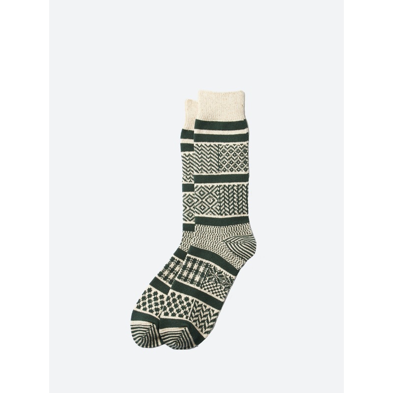 Multi Jacquard Crew Sock INDIGO/GREEN M