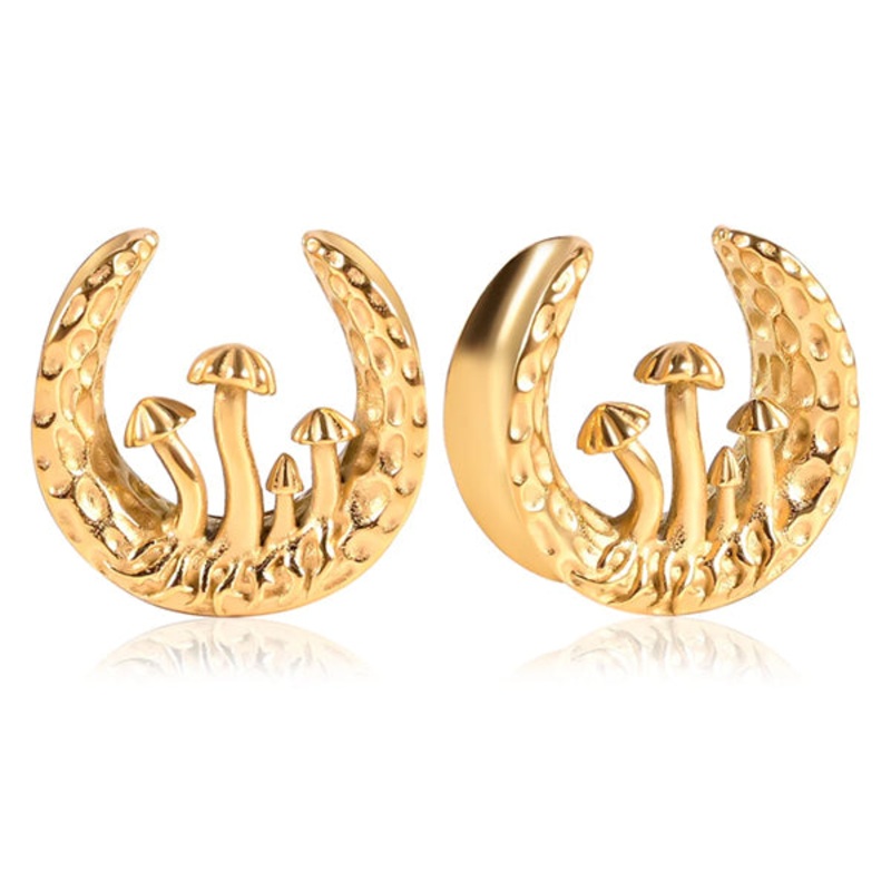 These mushroom saddle spreaders are made from gold PVD coated 316L stainless steel. We recommend buying these one size smaller than the double flare plugs you normally wear. Choose your size below.