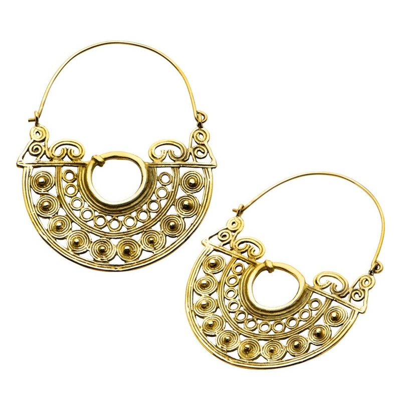 These18 gauge Naro earrings are cast from solid brass and approximately 2-5/16″ tall.
