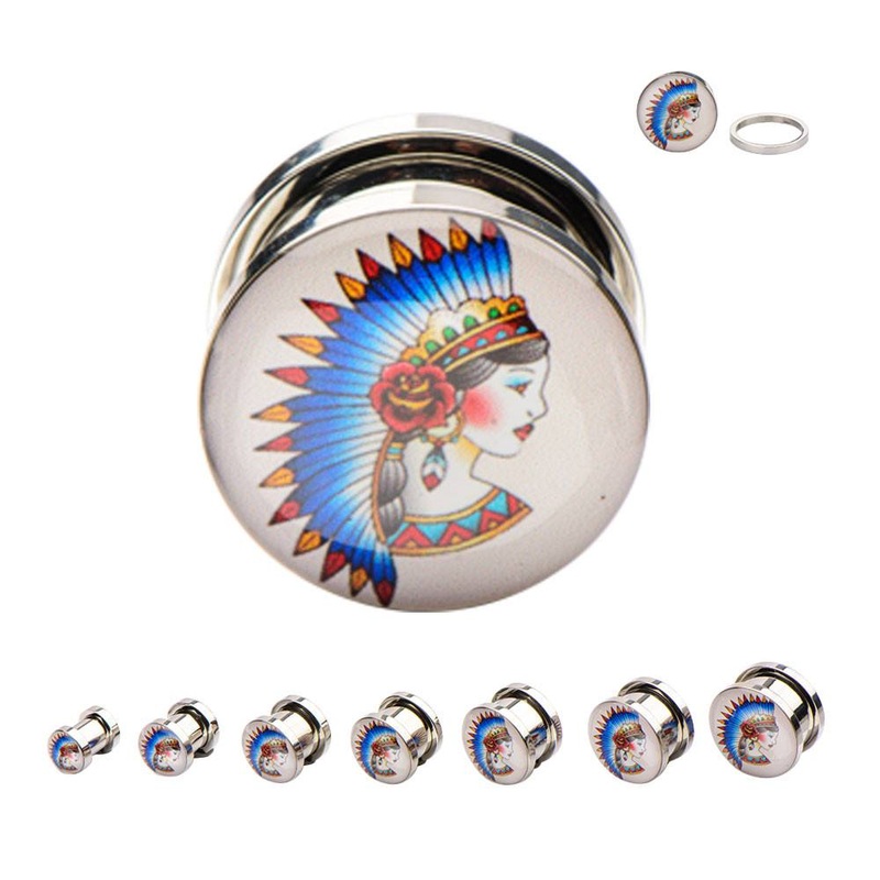 These screw-on native princess plugs are made from 316L stainless steel with external threading. They have a wearable area of 1/4" between flares. The back side unscrews for easy insertion. Choose your size below.