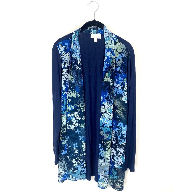 Belle by Kim Gravel navy blue light cardigan with sheer blue front piece