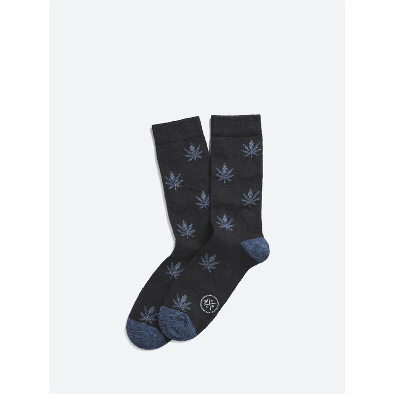 Relaxation, comfort, and a touch of provocation with these patterned socks. A jacquard of cannabis leaves covers this slub cotton model.Calf-height socksRibbed cuffsAll-over cannabis leaf patternContrast heel and toeHeight: 28 cmMaterialsFabric Content: 92