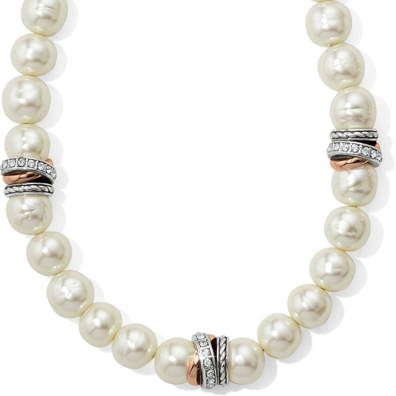 Decadent handmade Japanese pearls add luster and luxe to this short necklace embellished with a tumble of mixed metal and fine quality crystal-encrusted rings from our Neptune’s Rings Collection.